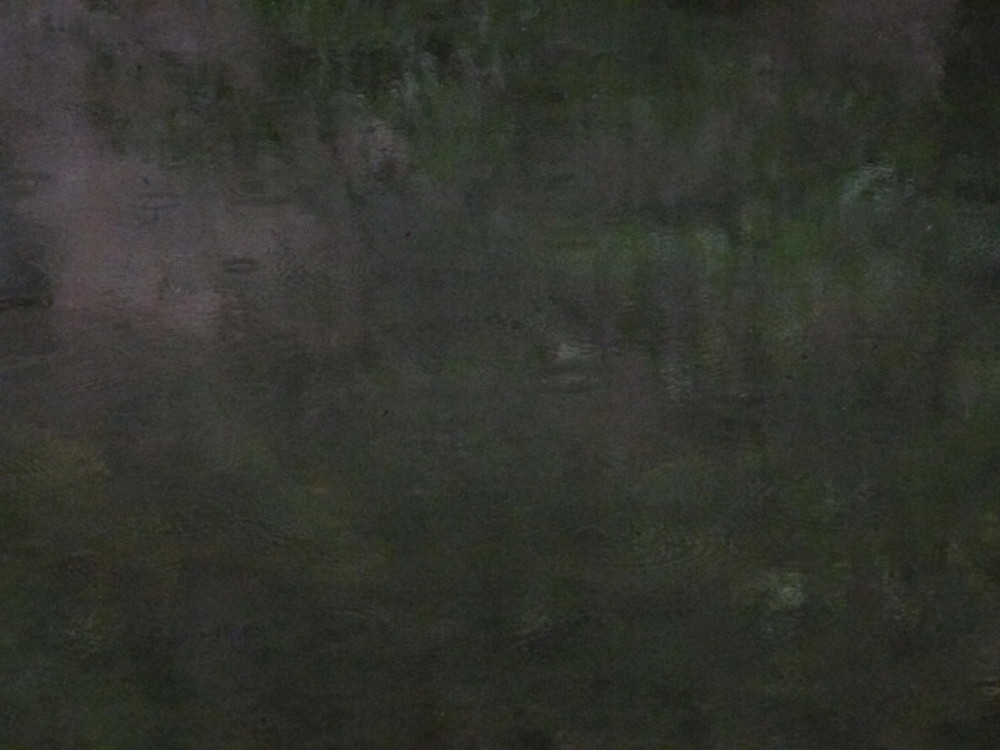 ‘Rain drops hit the surface of deep, still water in Chellow Dene. Trees and flowers are reflected on the disturbed surface and the effect reminds me of felted woollen cloth.’